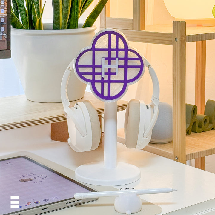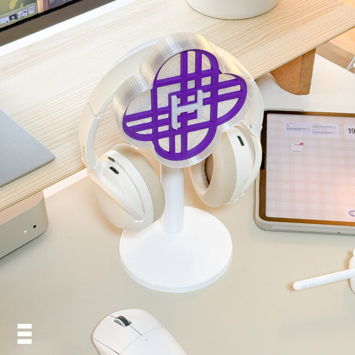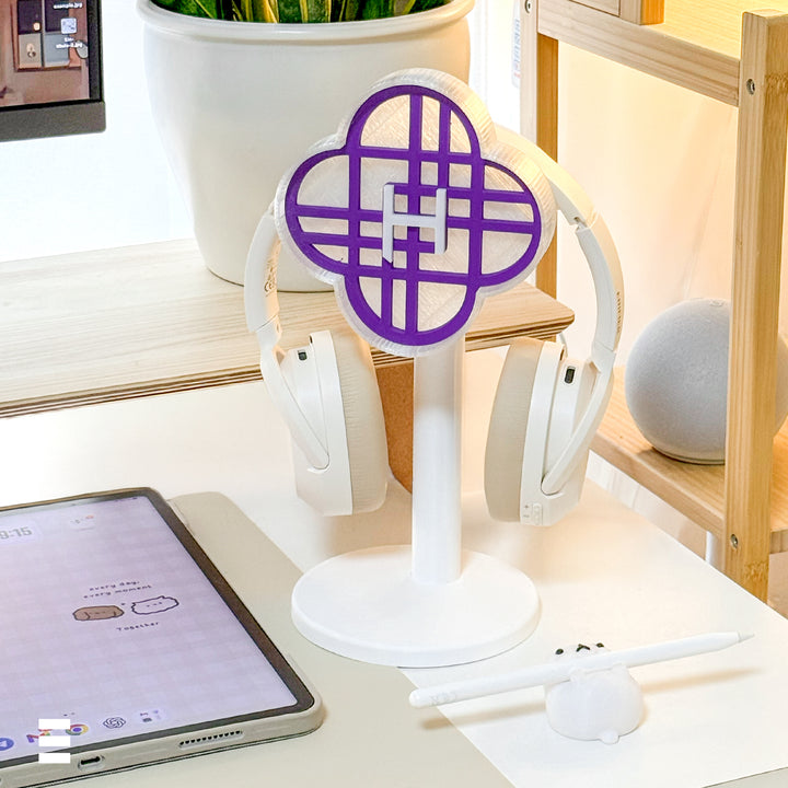 Inspirado en el icónico light stick de Huntrix de la serie K-Pop Demon Hunters, este soporte combina diseño y funcionalidad. Su pieza frontal con el logo es intercambiable, lo que te permite personalizar tu setup fácilmente.