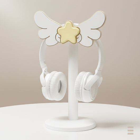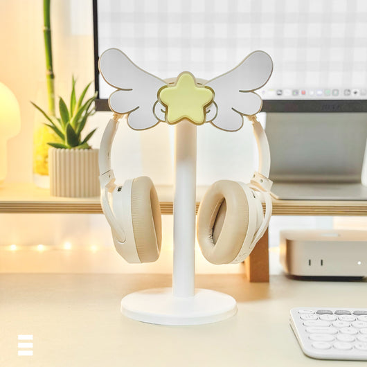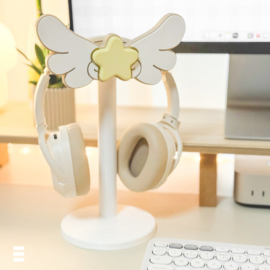 Inspirado en las alas mágicas de Card Captor Sakura, este soporte combina elegancia y ternura en un diseño perfecto para fans del anime y amantes del estilo kawaii. Su pieza superior con estrella y alas es intercambiable, permitiéndote personalizar tu setup con facilidad.